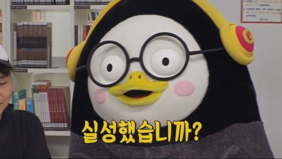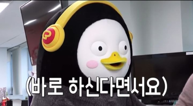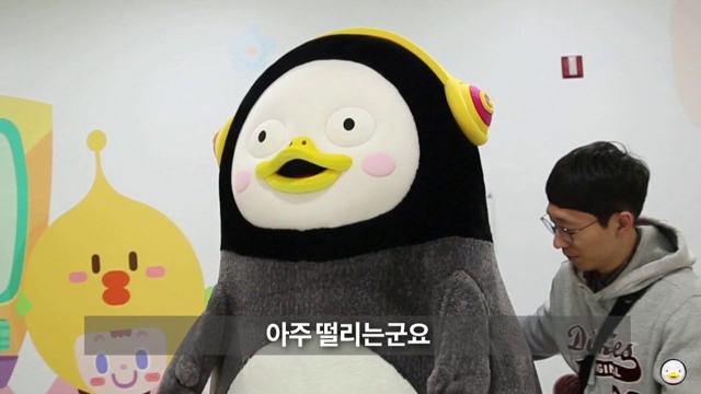 반면 펭수는 이런 후시녹음으로 목소리를 입히는 다른 캐릭터와는 달리 인형탈 연기자가 직접 인형탈을 입은 채로 대사를 합니다.