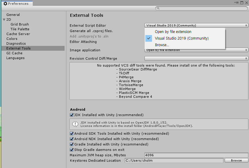 * 혹시 그래도 안되면 환경 설정에 비쥬얼 스튜디오가 설정 되어 있는지 확인해보세요