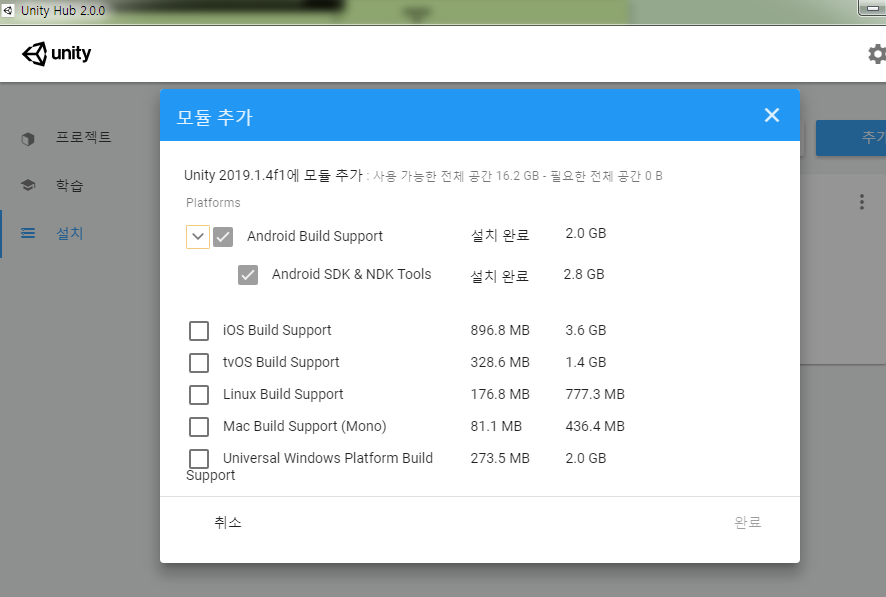 혹시 IL2CPP 빌드를 하려는데 SDK, JDK, NDK 관련 오류가 발생한다면
