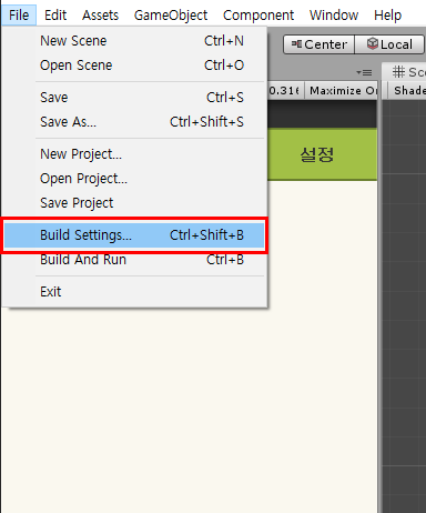 [File] > [Build Settings...] 으로 빌드 셋팅을 확인합니다.