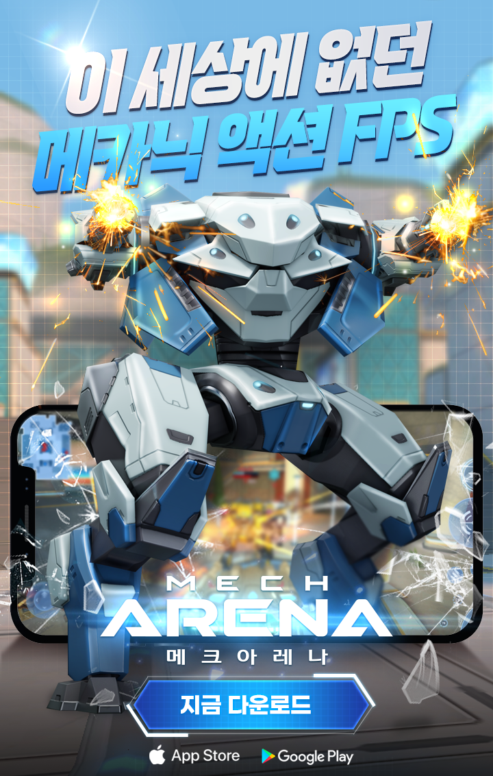 <Mech Arena (메크 아레나): Robot Showdown> 게임은 F2P 3인칭 모바일 전술 슈팅 메카닉 대전 게임이다. 런칭 시 주어지는 15종의 메크는 로봇 별 차별화된 스킬 및 버프 요소, 업그레이드 가능한 장비를 전투에 활용하는데 초점을 맞춘 팀 워크 기반의 고강도 아레나 실시간 매칭 기반의 전투가 특징이다.