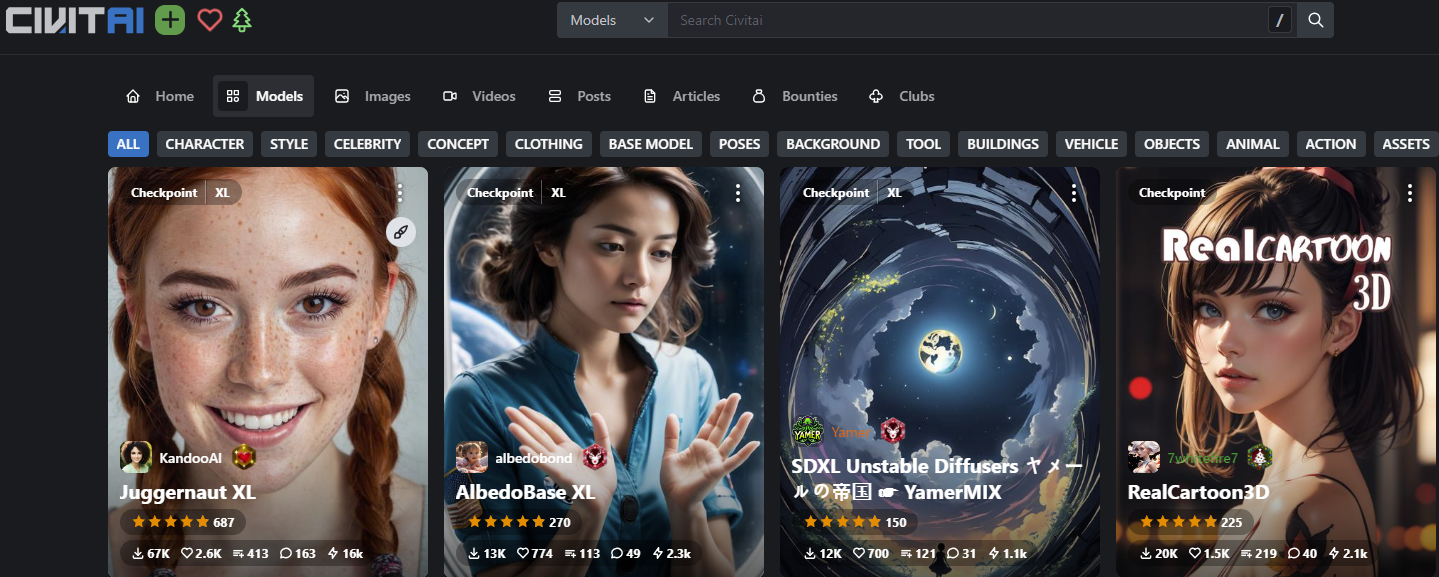 여튼 SDXL 모델을 적용하기 위해서는 SDXL을 적용한 모델을 다운로드 받아야 합니다.