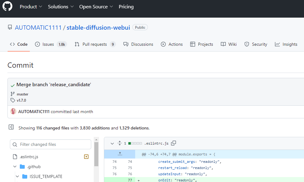 버전코드는 https://github.com/AUTOMATIC1111/stable-diffusion-webui 사이트에서 확인 가능합니다.