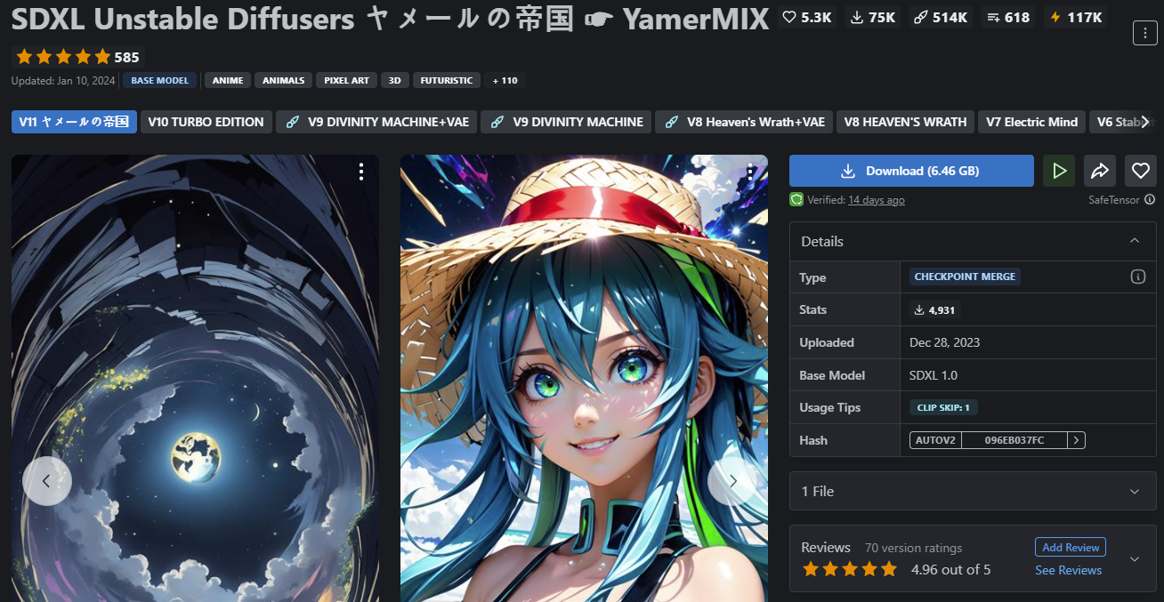 참고로 SDXL 모델은 모델 설명에 SDXL이라고 써있습니다. 잘 찾아서 다운로드 해주심 됩니다.