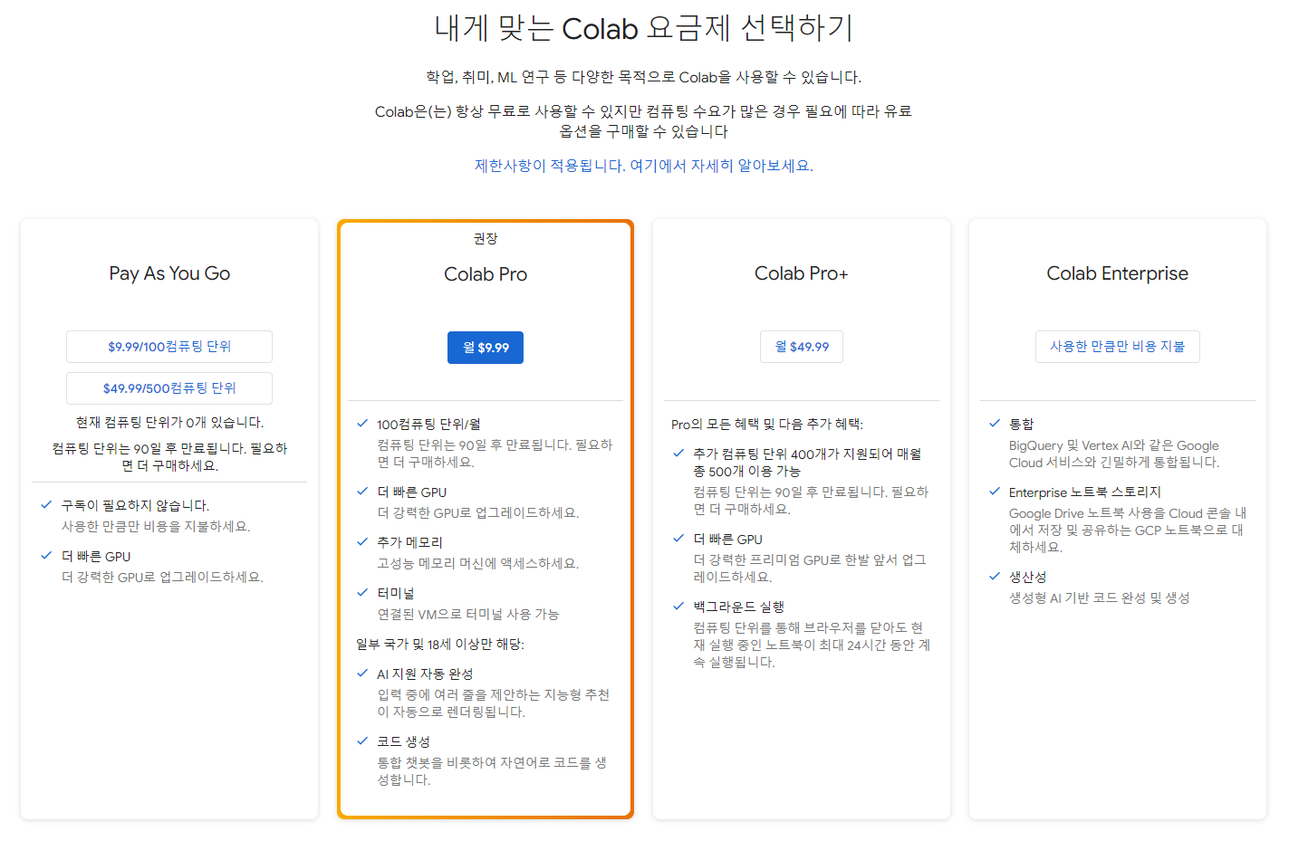 그러나... 현재 기준(2024.01.11) 코랩은 이제 무료가 아닙니다.
