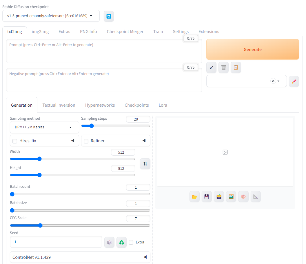 우선 최초 설치 후에는 적용된 이미지 생성에 필요한 생성모델이 기본만 있어서 제대로 이미지를 생성하기가 어렵습니다.