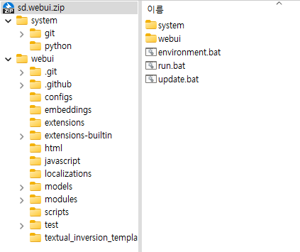 파일 중에 run.bat 파일을 눌러 webUI를 실행하면 됩니다.