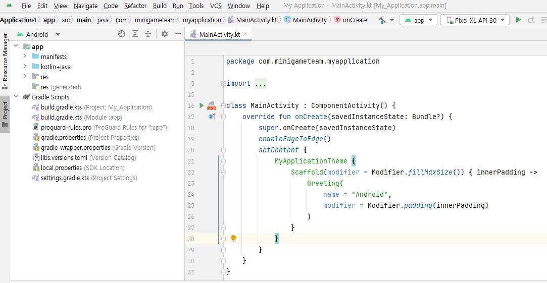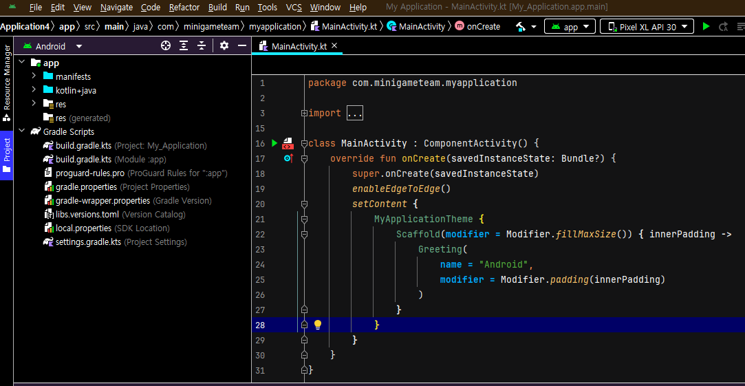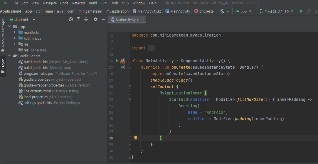안드로이드 스튜디오 에디터에는 몇가지 기본 테마가 있습니다.
