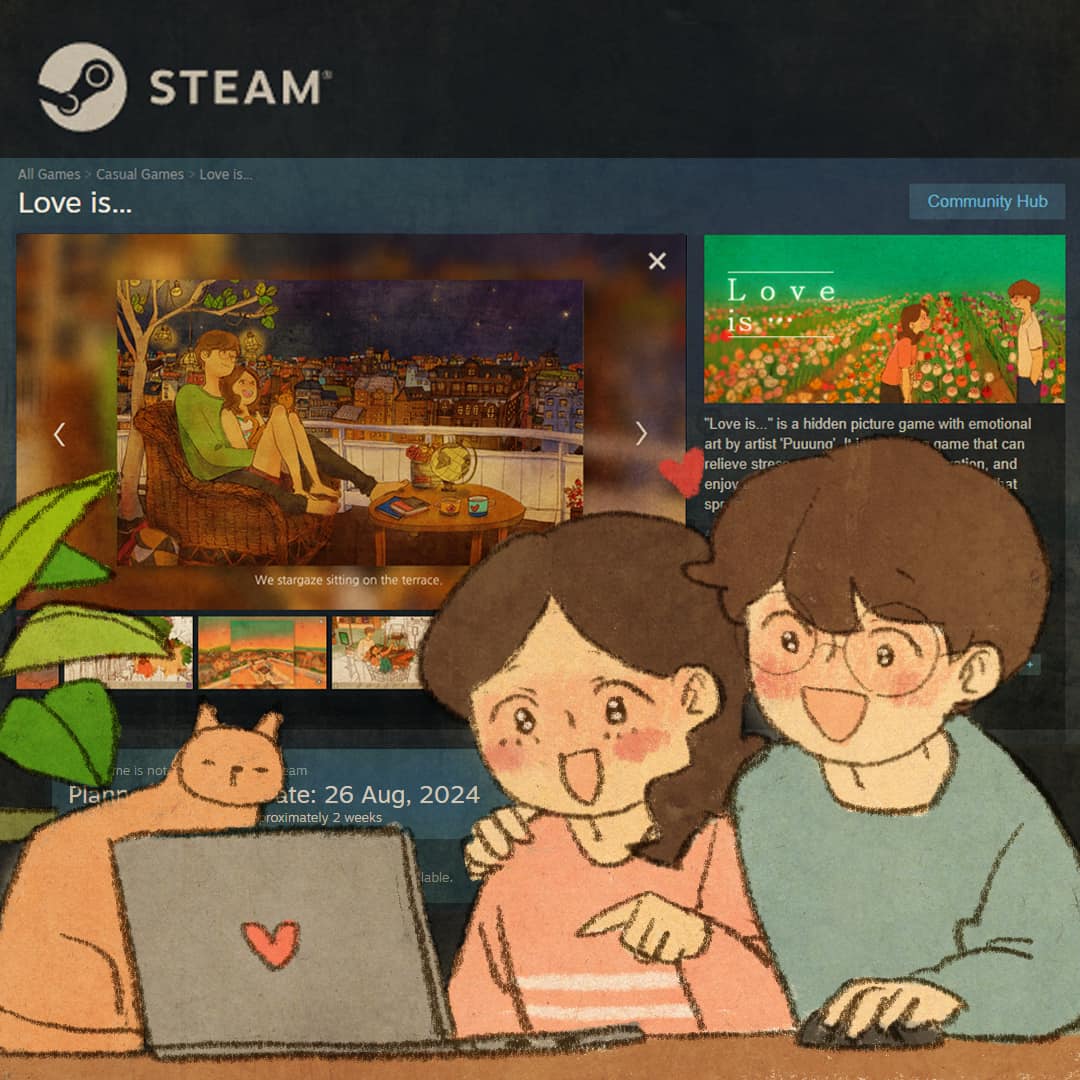 <러브 이즈(Love is…)>는 모바일 버전으로 먼저 선보였으며 안드로이드, 아이폰 마켓 글로벌 누적 다운로드 300만건 이상, 누적 평점 4.5점으로 전세계 팬들로부터 좋은 평가를 받고 있다. 특히 이번에 서비스하는 스팀 버전에서는 모바일 버전보다 더 선명한 고품질의 일러스트와 애니메이션, OST를 제공하고 있으며 작가가 직접 그린 특전에 힘입어 출시 전 공개되는 상품 페이지에서 1만건 이상의 위시리스트를 기록하였으며 출시 직후 긍정적 평가와 리뷰로 높은 관심을 이어가고 있다.