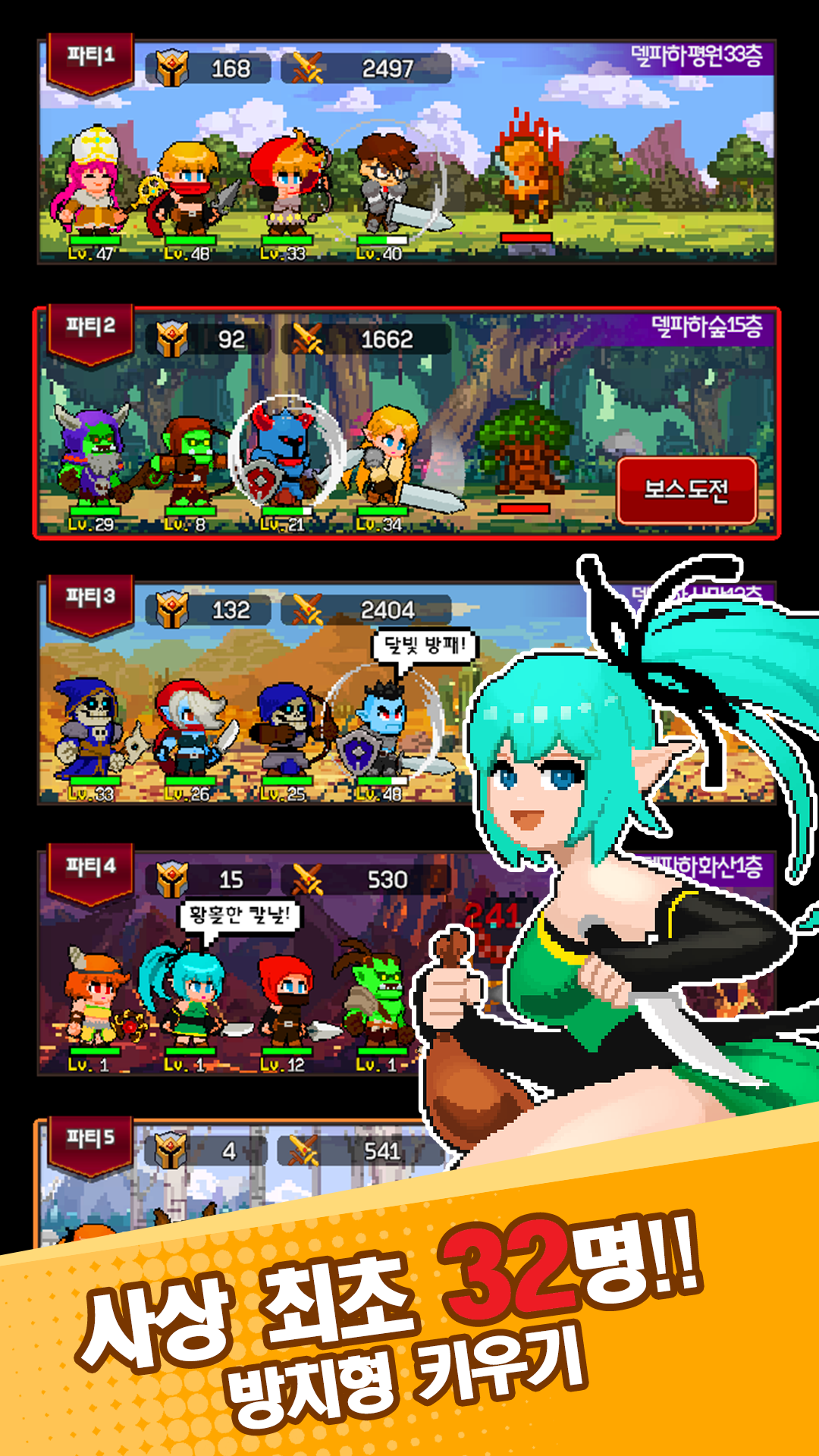 <32용사 키우기>는 모바일 구글 스토어, 원스토어 버전으로 먼저 선보이며 아이폰 마켓을 포함하여 권역을 확장할 계획이다. 특히 이번 정식 서비스를 기념하여 사전 등록을 진행한 유저에게 다양한 패키지 보상을 지급하는 등 이벤트가 진행 중이다.